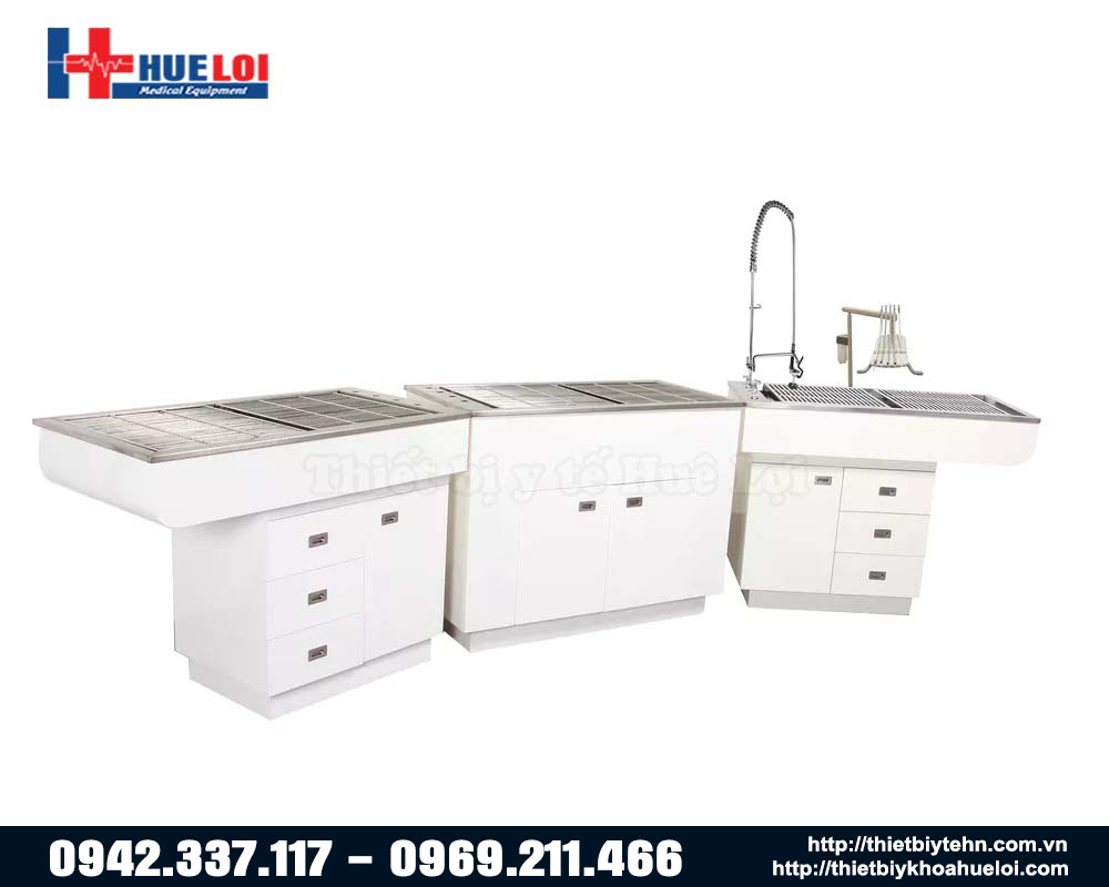 - 851L: Bàn chuẩn bị / khám răng với bồn tắm lệch trái và tủ để đồ