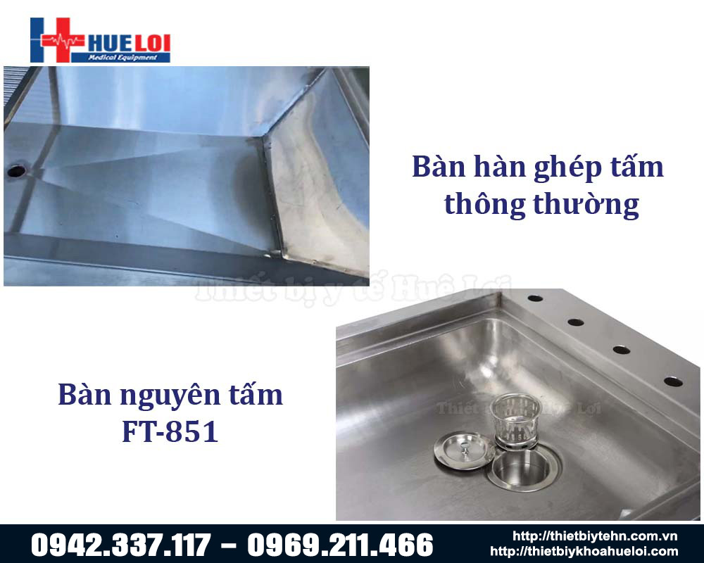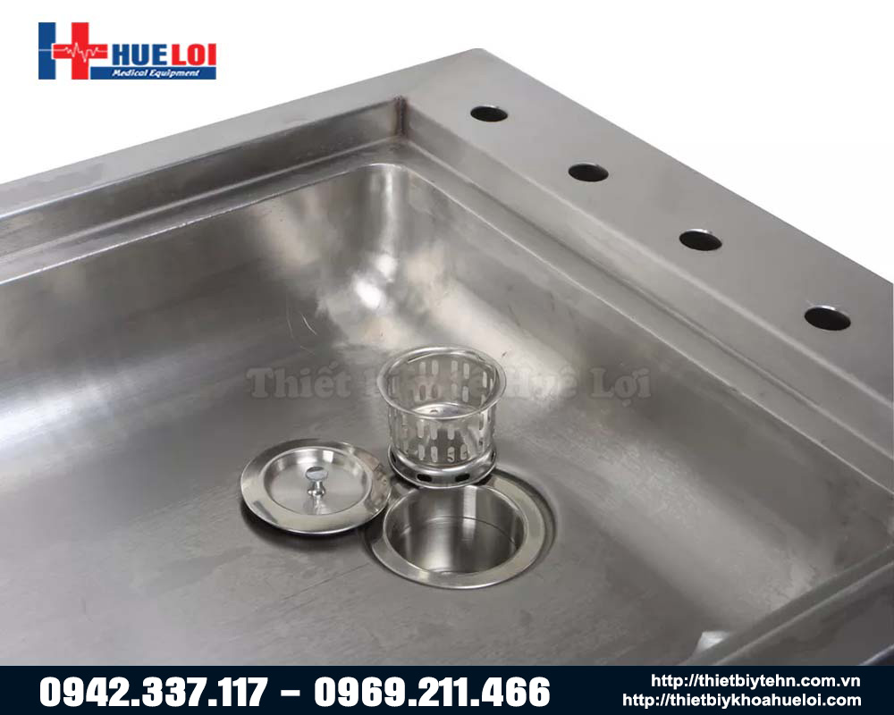 - Mặt bàn được đúc nguyên khối, uốn cong tạo chiều cho dòng chảy thoát nước, dễ dàng vệ sinh, tránh bám bụi bẩn. Đồng thời, do bàn là nguyên khối nên độ bền cao hơn, không bị rò rỉ nước bởi mối hàn không khít như các loại bàn hàn ghép tấm thông thường khác