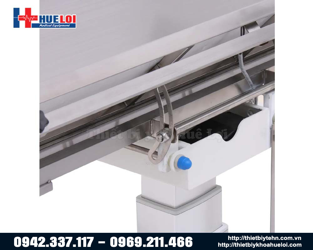- Bệ đỡ bàn dạng ống lồng với cột nâng mỏng giúp tăng không gian dưới bàn mổ