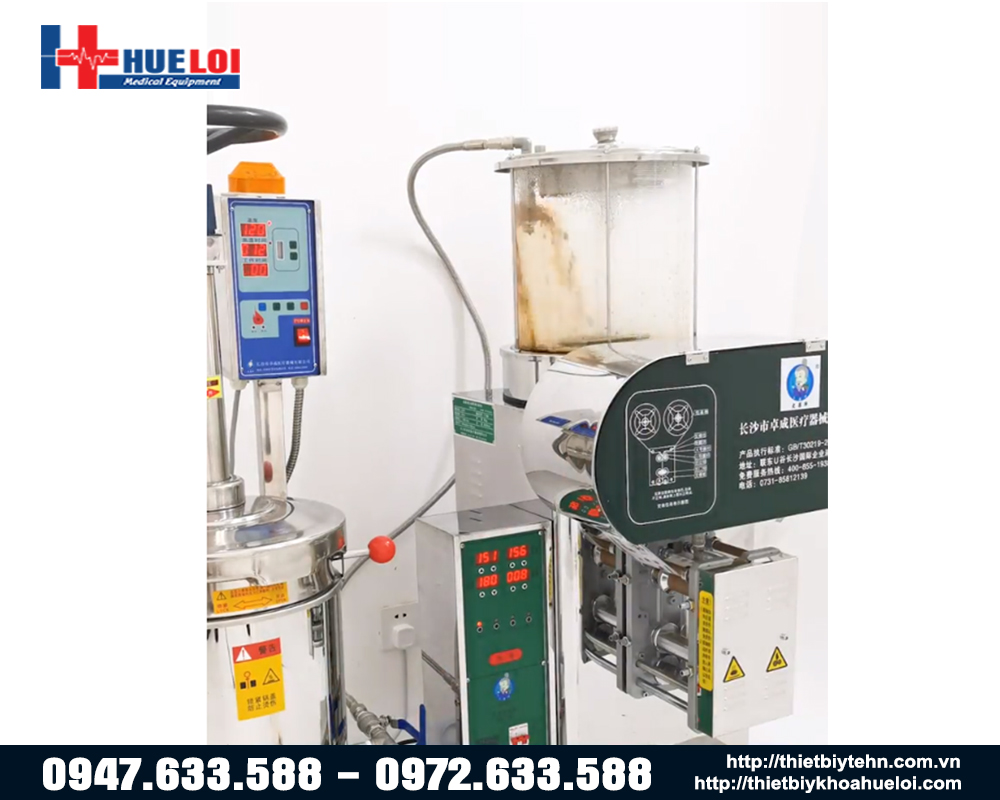 Hoặc đã có sẵn máy đóng túi tự động, để tiết kiệm chi phí quý khách nên tham khảo máy sắc thuốc bắc có áp suất cao độc lập. Máy giúp thời gian sắc thuốc trở nên nhanh chóng, đồng thời với chức năng chiết ép thuốc tự động dưới áp lực cao giúp lấy hết được tinh chất của thang thuốc. Thích hợp sử dụng trong các bệnh viện hoặc phòng khám Y học cổ truyền.