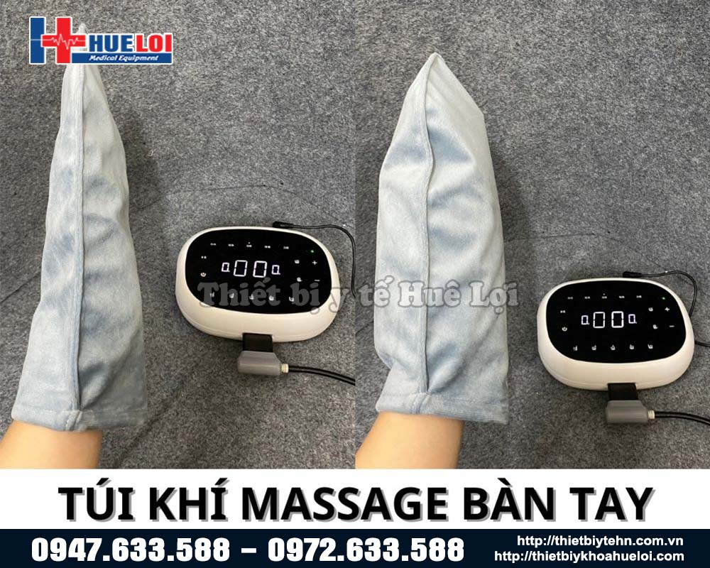 - Chương trình số 03: Nén ép khí trị liệu, máy liên lục bơm khí trong vòng 7 giây và xả khí trong vòng 7 giây, thực hiện chu trình xoa bóp liên tục giúp tăng cường tuần hoàn máu và bạch huyết, cải thiện vận động và cảm giác vùng bàn ngón tay. Lưu ý: Cần xả hết khí trong bao khí trước khi sử dụng.