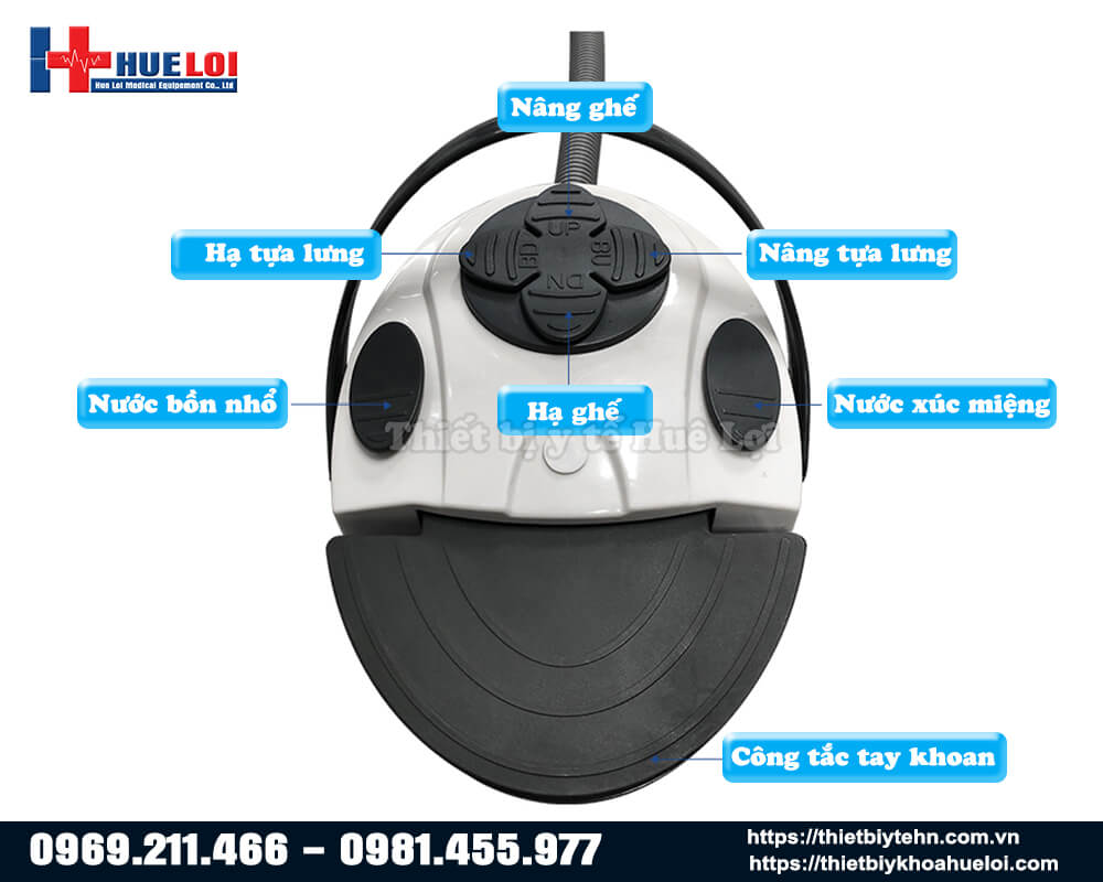 - Thao tác điều khiển phụ đa năng, thuận tiện cho trợ lý điều khiển các chức năng thông thường của ghế nha khoa