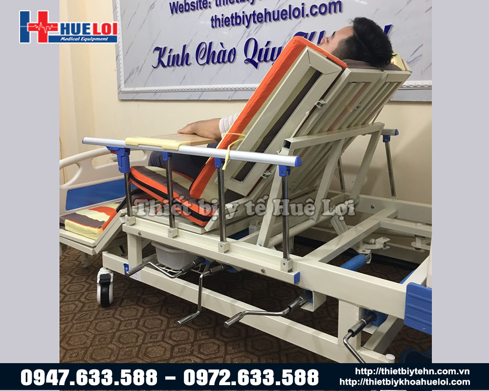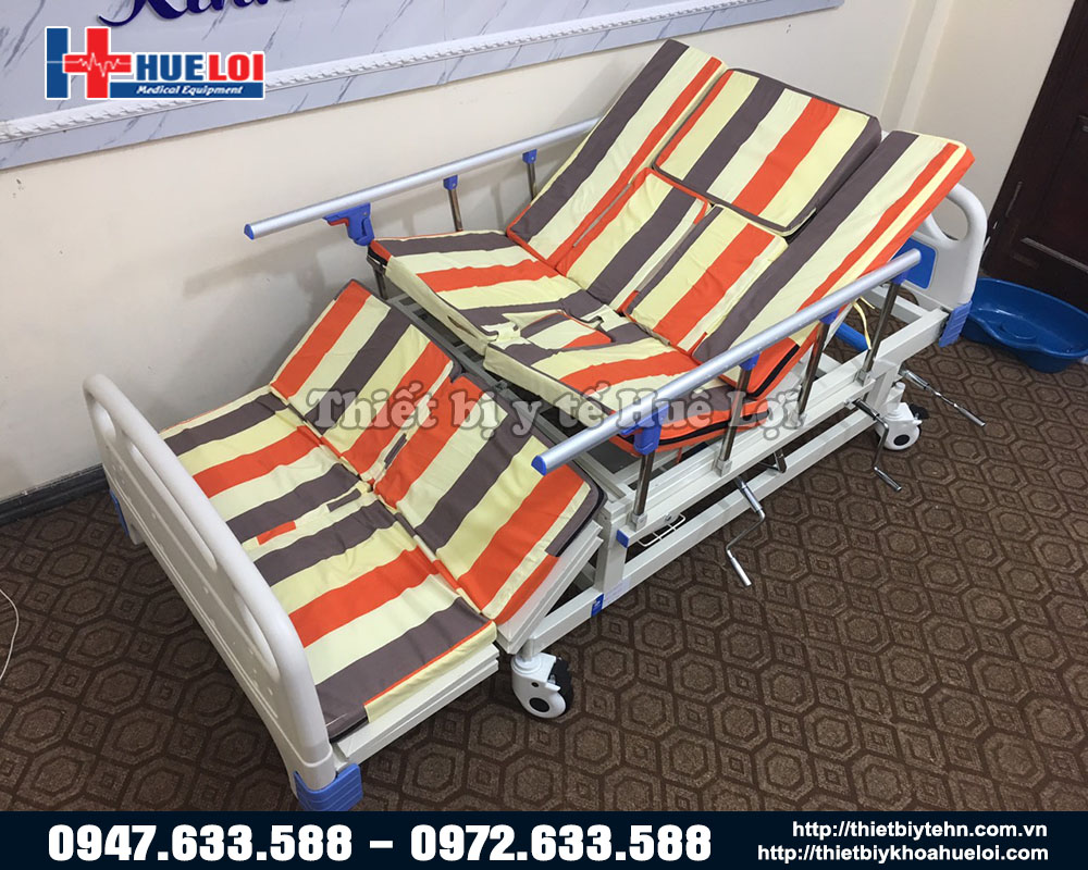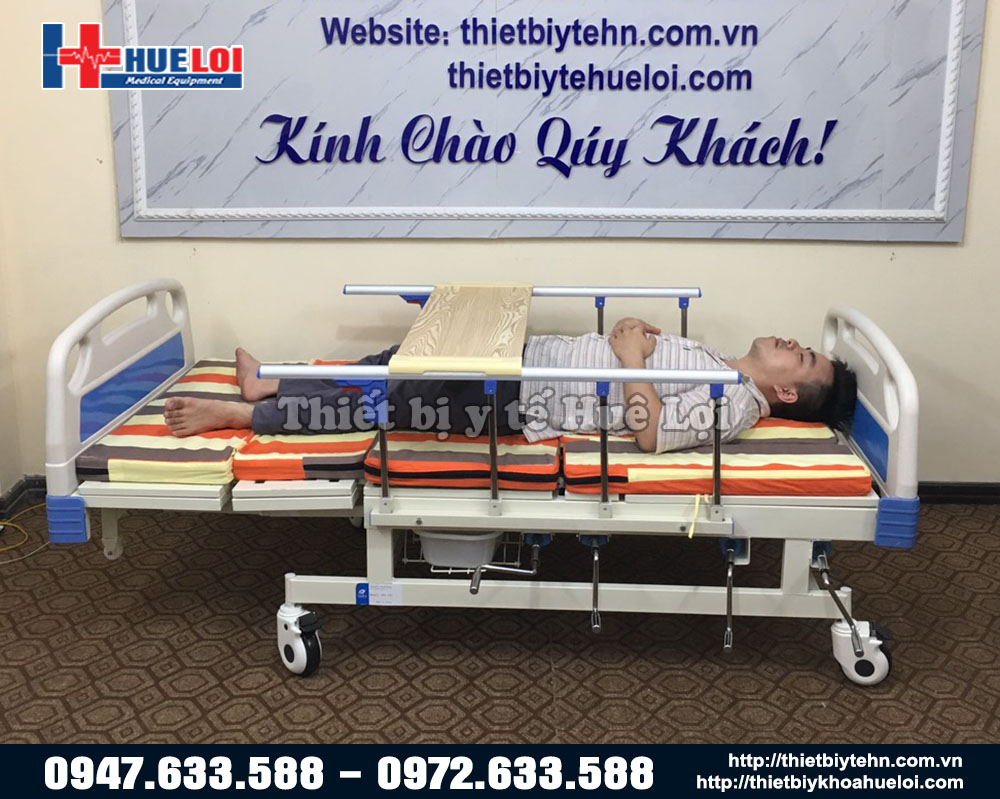 - Ngoài ra giường còn có chức năng nâng hạ bô vệ sinh một cách đơn giản, giúp bệnh nhân đi vệ sinh 1 cách dễ dàng với cả tư thế ngồi và tư thế nằm.