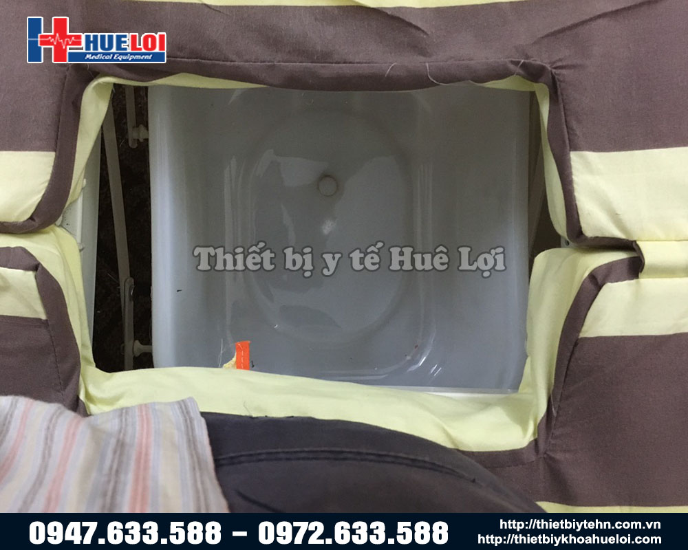 - Chậu gội đầu được thiết kế ngay tại giường, chỉ cần tháo phần gối đầu và để chậu vào là người nhà có thể gội đầu, vệ sinh cho bệnh nhân ngay tại giường