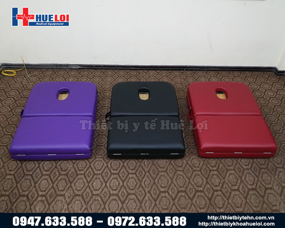 - Giường massage chân gỗ nâng đầu gấp gọn có 3 màu cơ bản: đỏ - đen - tím