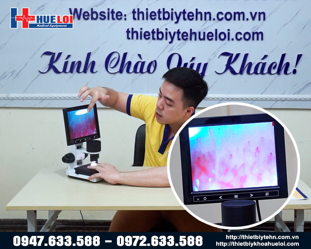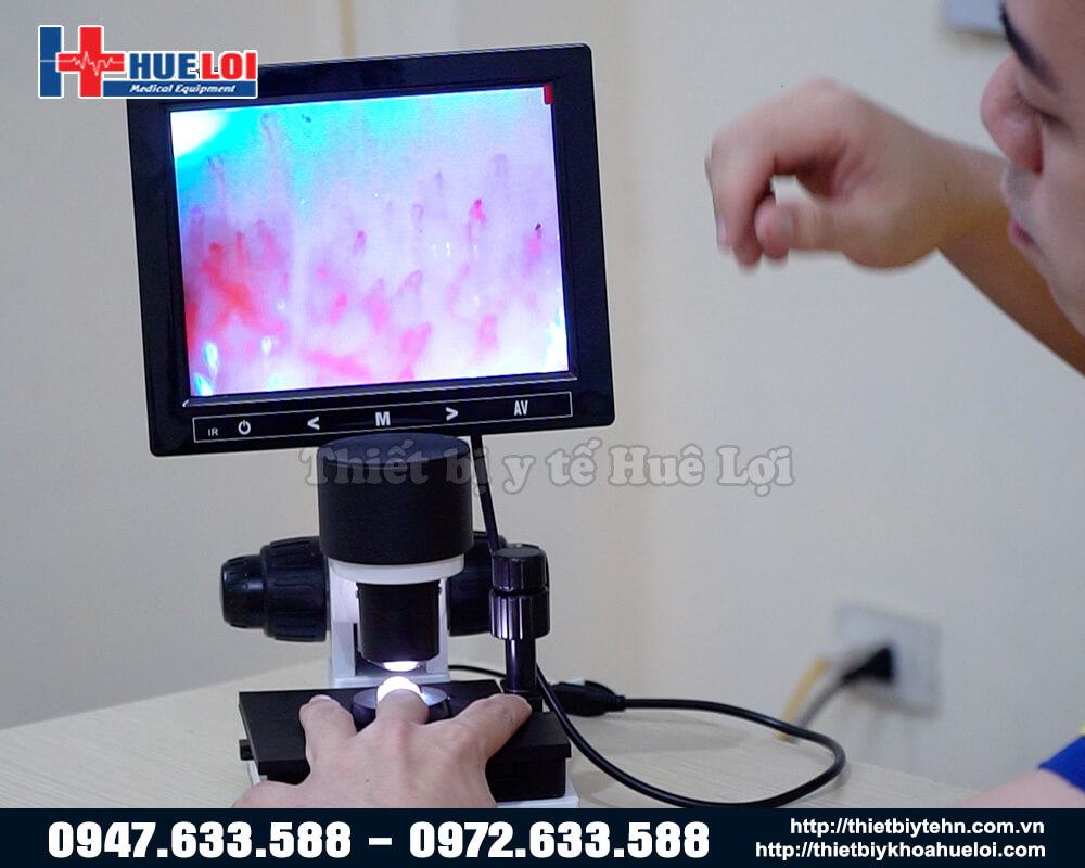 Kính hiển vi soi mạch máu là một chiếc kính hiển vi với độ phóng đại 400 lần giúp soi rõ các mạch máu, thậm chí là máu đang di chuyển trong mạch. Máy có thể kết nối với các màn hình rời như máy tính, TV, máy chiếu thông qua bộ chuyển đổi hình ảnh, giúp hiển thị quan sát một cách trực quan và dễ dàng lưu trữ và theo dõi tình trạng bệnh nhân.