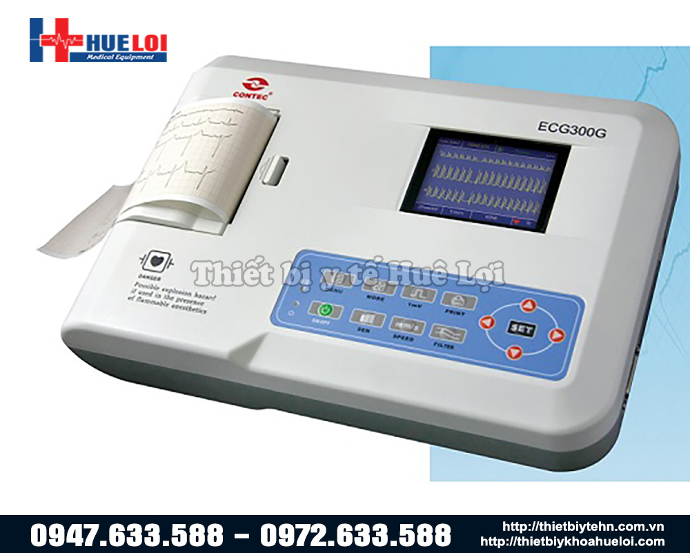 Máy điện tim 3 cần CONTEC-300G có màn hình 3.5"TFT LCD màu hiển thị 12 đạo trình, kiểm tra các dạng sóng trước khi in giúp tiết kiệm giấy in. Máy có các bộ lọc đặc hiệu để cho ra dạng sóng chính xác nhất, đặc biệt còn dựa vào dạng sóng để tự động phân tích và chẩn đoán một số ECG cơ bản.