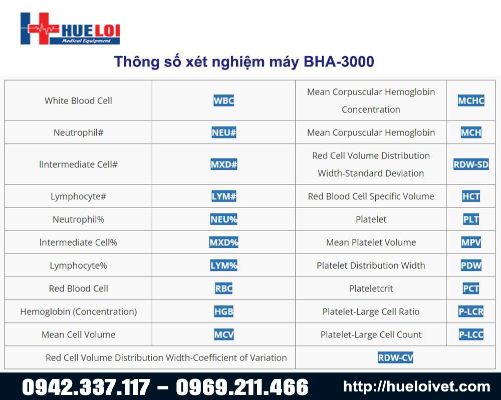 Thông số kỹ thuật máy xét nghiệm huyết học 3 thành phần BHA3000:
