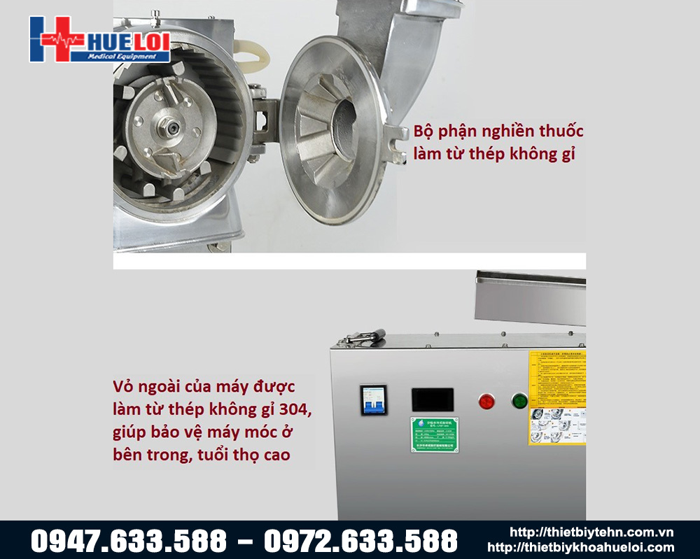 Máy tán thuốc bắc dạng bột cao cấp có công dụng bào chế các vị thuốc động y thành dạng bột mịn hoặc tán bột để luyện hoàn. Máy làm việc tự động hoàn toàn, công suất làm việc cao, tốc độ làm việc nhanh, nghiền nhỏ được cả những vị thuốc cứng, thích hợp dùng cho các bệnh viện và phòng khám Y học cổ truyền, giúp tiết kiệm thời gian và công sức của nhân viên bào chế.