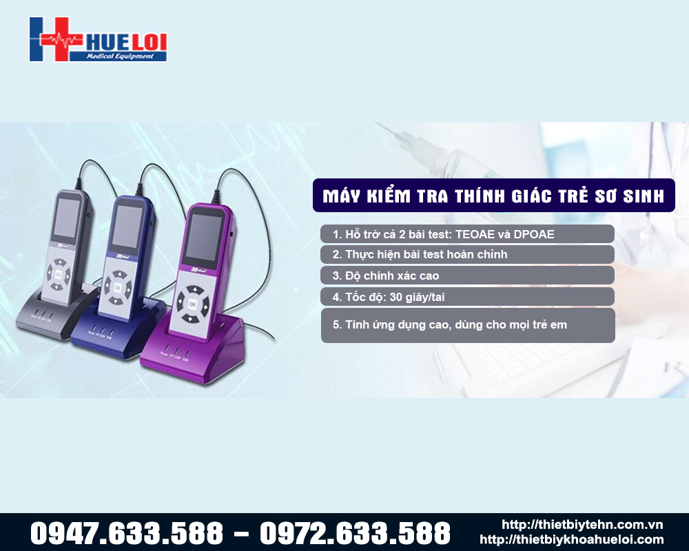 Đối với người lớn, quý khách tham khảo sản phẩm máy kiểm tra thính lực tại đây! Máy thiết kế nhỏ gọn, tính công thái học cao, đầu ra 2 kênh độc lập, đáp ứng đầy đủ nhu cầu của bác sĩ Tai Mũi Họng và chuyên viên thính học.