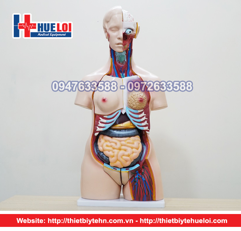 Mô hình giải phẫu nội tạng nữ giới thể hiện đầy đủ các tạng của cơ thể người trưởng thành, với khả năng bóc tách nhiều phần để nghiên cứu giải phẫu sâu bên trong của cơ thể. Đặc biệt bộ phận sinh dục có 2 phần, 1 của nam và 1 của nữ có thể tháo rời thay thế cho nhau dễ dàng. Cùng với cột sống đã được bộc lộ hoàn toàn ở mặt lưng, mô hình hoàn toàn phù hợp để giảng dạy nhiều bài giảng giải phẫu khác nhau chỉ trên 1 mô hình.