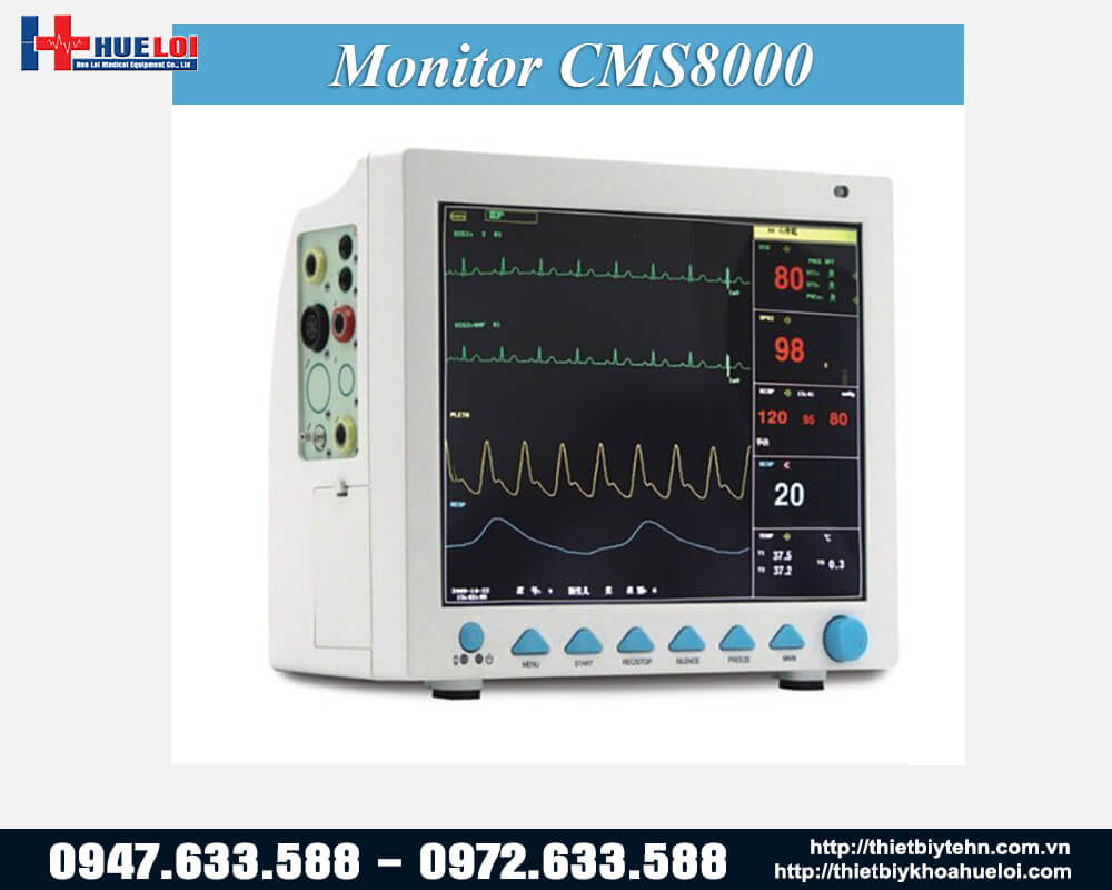 Monitor theo dõi bệnh nhân Contec CMS8000 được dùng để theo dõi các thông số, chỉ số sống của bệnh nhân. Máy được sử dụng trong phòng cấp cứu, hồi sức, phòng mổ... tại các bệnh viện, trung tâm y tế và phòng khám. Máy có độ bền cao, các thông số được đo đạc chính xác, giá thành hợp lý, đây là dòng máy monitor đáng mua nhất trên thị trường hiện tại.