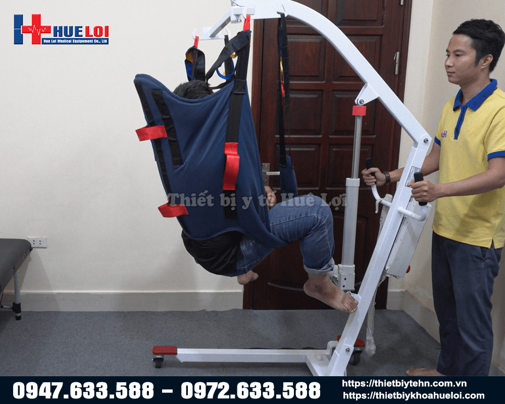 Với phương pháp vận chuyển bằng tay đỡ bệnh nhân như thông thường thì phải cần từ 2-3 người mới có thể di chuyển bệnh nhân được, đối với những người bệnh có thể trạng to lớn thì lại càng vất vả. Việc sử dụng chiếc máy này có ưu điểm vượt trội là cần rất ít công sức, chỉ cần 1 người đeo phần địu vào người bệnh nhân, sau đó việc nâng hạ bệnh nhân chỉ cần dùng nút bấm trên bảng điều khiển. Máy có 4 bánh xe linh hoạt, giúp bệnh nhân có thể di chuyển từ giường sang xe lăn, đi tắm, đi vệ sinh, lên ô tô... rất thuận tiện và dễ dàng.