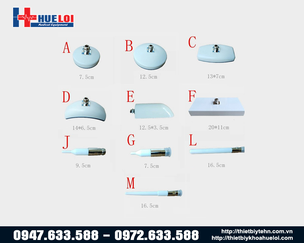 - Có tới 5 loại đầu dò với kích thước khác nhau đáp ứng được mục đích điều trị tại các vùng khác nhau của cơ thể