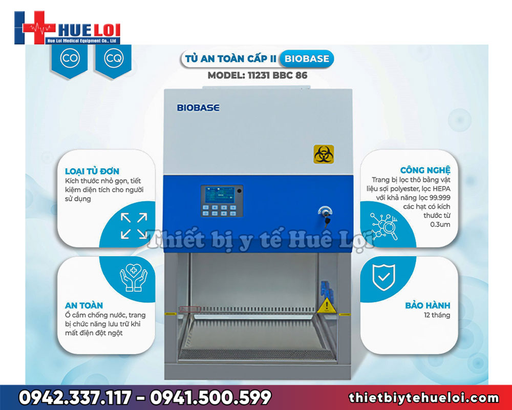 Thông tin tủ an toàn sinh học cấp II loại A2 Biobase 11231BBC86