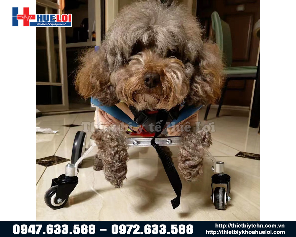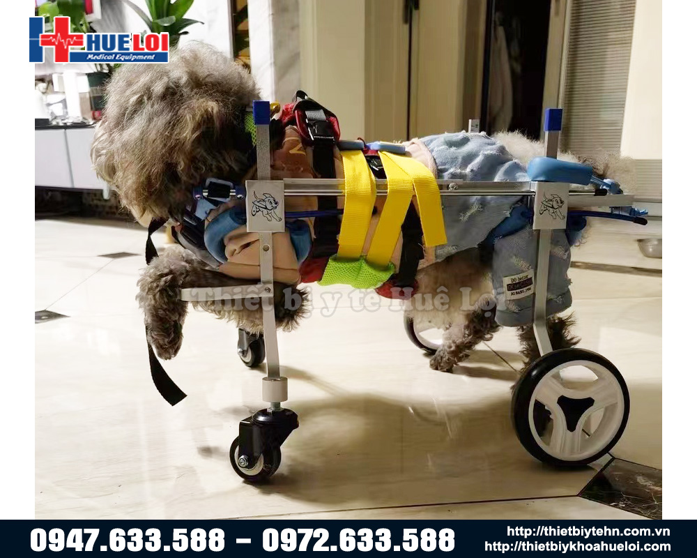Trường hợp để hỗ trợ việc đi lại cho chó bị tổn thương 2 chi sau, quý khách tham khảo mẫu xe lăn cho chó 2 bánh linh hoạt. Xe được thiết kế linh hoạt với chất liệu nhôm cùng khả năng điều chỉnh chiều dài, chiều rộng và chiều cao để phù hợp với đa số chó cưng.